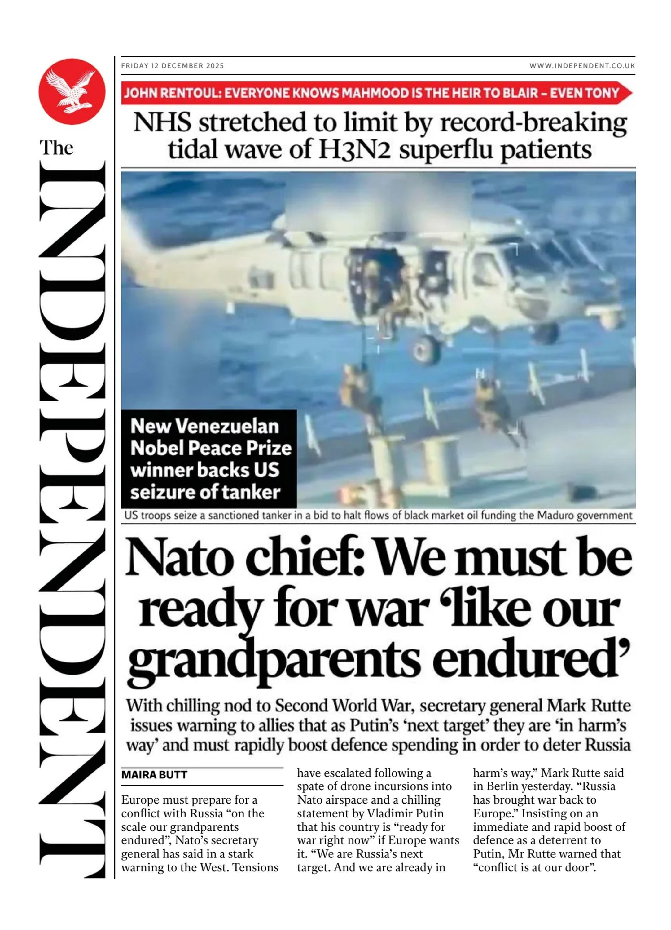Europe is scrambling for cash to keep Ukraine afloat, the U.S. is wavering on peace talks, and NATO is warning the continent to prepare for a war on the scale “our grandparents endured.” Even as Brussels debates a €210 billion financing plan built on frozen Russian assets, President Trump is threatening to skip negotiations after Ukrainian President Volodymyr Zelensky rejected Washington’s jaw-dropping “free economic zone” proposal for Donbas - a plan that would see Kyiv surrender territory it currently controls in exchange for vague security guarantees and a sketchy mechanism that could place the region’s rich resources in the hands of the highest outside bidder. Meanwhile, a parallel drama is unfolding in the Americas: the U.S. seizing Venezuelan oil tankers, Moscow tightening its embrace of Nicolás Maduro, and Nobel laureate María Corina Machado slipping past security forces in disguise to reach Oslo. Taken together, the picture is unmistakable - democracies under strain, autocrats on the move, and a global order tilting toward a far more dangerous phase. As I said on air from Odesa on Thursday, at no time in recent memory has the rules-based international order appeared to be in such free fall.