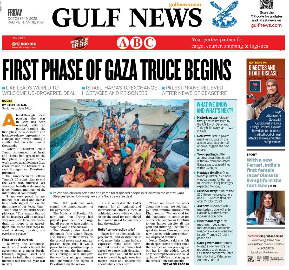 The Israeli military says it has partially withdrawn troops from parts of Gaza after a ceasefire agreement between Israel and Hamas came into effect on Friday morning. Israeli forces said they had pulled back to an agreed position within the territory - though troops still occupy half of the Strip. Footage shows thousands of Palestinians making their way to the north of Gaza, which has been heavily bombarded by Israeli forces in recent months. The ceasefire came into effect after the Israeli government approved the first phase of US President Donald Trump’s ceasefire and hostage return deal on Thursday. The next phases are still being negotiated. Under the deal, Hamas has until 12:00 local time (10:00 BST) on Monday to release all Israeli hostages - including 20 who are believed to be alive, and up to 28 hostages’ remains. Israel should also release about 250 Palestinian prisoners serving life sentences in Israeli jails. Israeli army radio said 100 will be released into the West Bank and five to East Jerusalem. More are expected to be deported. A further 1,700 Palestinians from Gaza who have been detained should also be released. Under the terms of the deal, aid trucks should also be allowed unrestricted into the Strip to bring desperately needed aid to Gaza’s population - many of whom have been repeatedly displaced during the two-year war. Around 600 aid trucks are expected to enter Gaza daily from Friday, though details of the rollout remain unclear and it has not yet been confirmed whether any increased aid has reached people since the ceasefire began. A famine was declared in part of the territory for the first time in August by UN-backed experts, who said more than half a million people were facing “catastrophic” conditions characterised by “starvation, destitution and death”. Israel has repeatedly denied that there is starvation in the territory.
