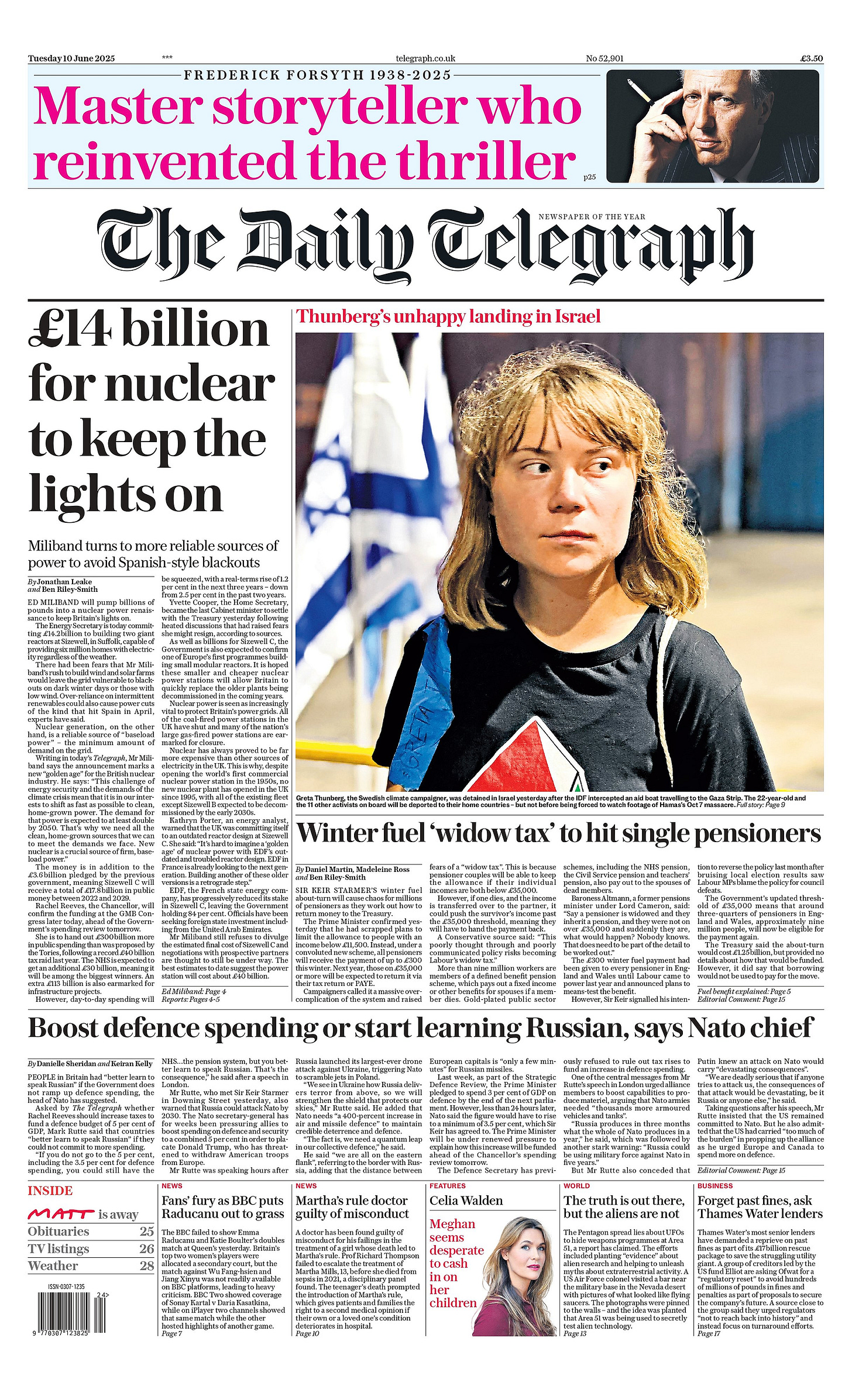 People in Britain had “better learn to speak Russian” if the Government does not ramp up defence spending, Mark Rutte has suggested. The Nato secretary general also warned that Russia could attack Nato by 2030 in a speech in London on Monday. Asked by The Telegraph if Rachel Reeves should increase taxes to fund a defence budget of 5 per cent of GDP, Mr Rutte said: “If you do not go to the 5 per cent, including the 3.5 per cent for defence spending, you could still have the NHS…the pension system, but you better learn to speak Russian. That’s the consequence.” The Nato secretary general has for weeks been pressuring allies to boost spending on defence and security to a combined 5 per cent in order to placate Donald Trump, who has threatened to withdraw American troops from Europe. Mr Rutte, who also met Sir Keir Starmer in Downing Street on Monday, was speaking hours after Russia launched its largest-ever drone attack against Ukraine, triggering Nato to scramble jets in Poland. “We see in Ukraine how Russia delivers terror from above, so we will strengthen the shield that protects our skies,” Mr Rutte said. He added that Nato needs “a 400-percent increase in air and missile defence” to maintain credible deterrence and defence. “The fact is, we need a quantum leap in our collective defence,” he said. He said “we are all on the eastern flank”, referring to the border with Russia, adding that the distance between European capitals is “only a few minutes” for Russian missiles. One of the central messages from Mr Rutte’s speech in London urged alliance members to boost capabilities to produce materiel, arguing that Nato armies needed “thousands more armoured vehicles and tanks”. “Russia produces in three months what the whole of Nato produces in a year,” he said, which was followed by another stark warning: “Russia could be using military force against Nato in five years.” - Daily Telegraph