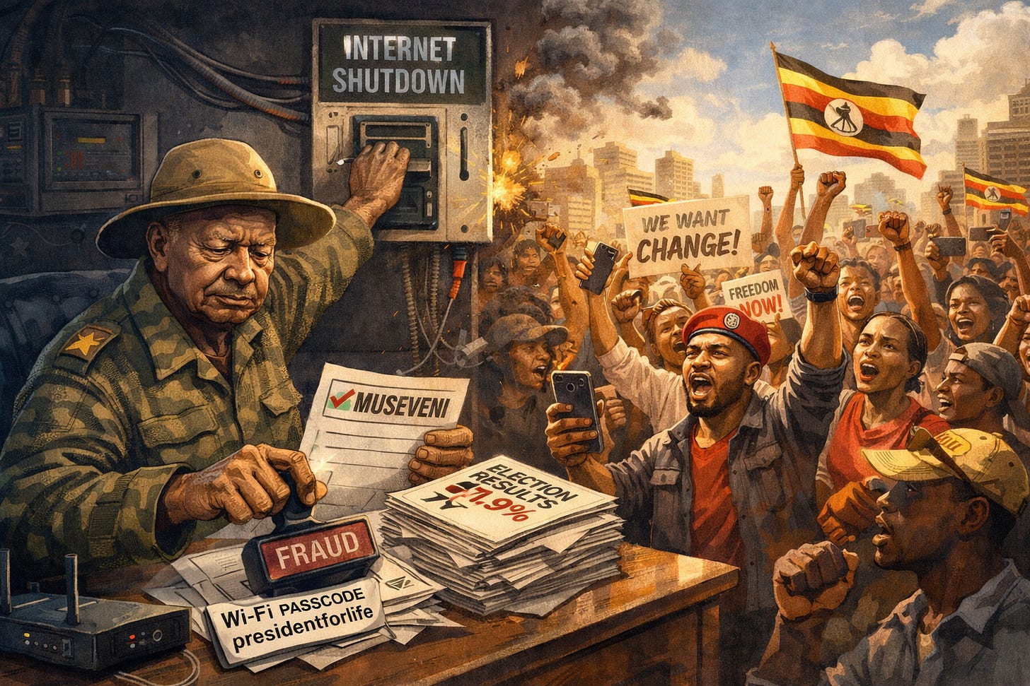 Museveni, 81, claims a seventh term after a blackout election marked by fear, intimidation, and a hunt for challenger Bobi Wine - while Uganda’s youth-heavy future collides with permanent rule