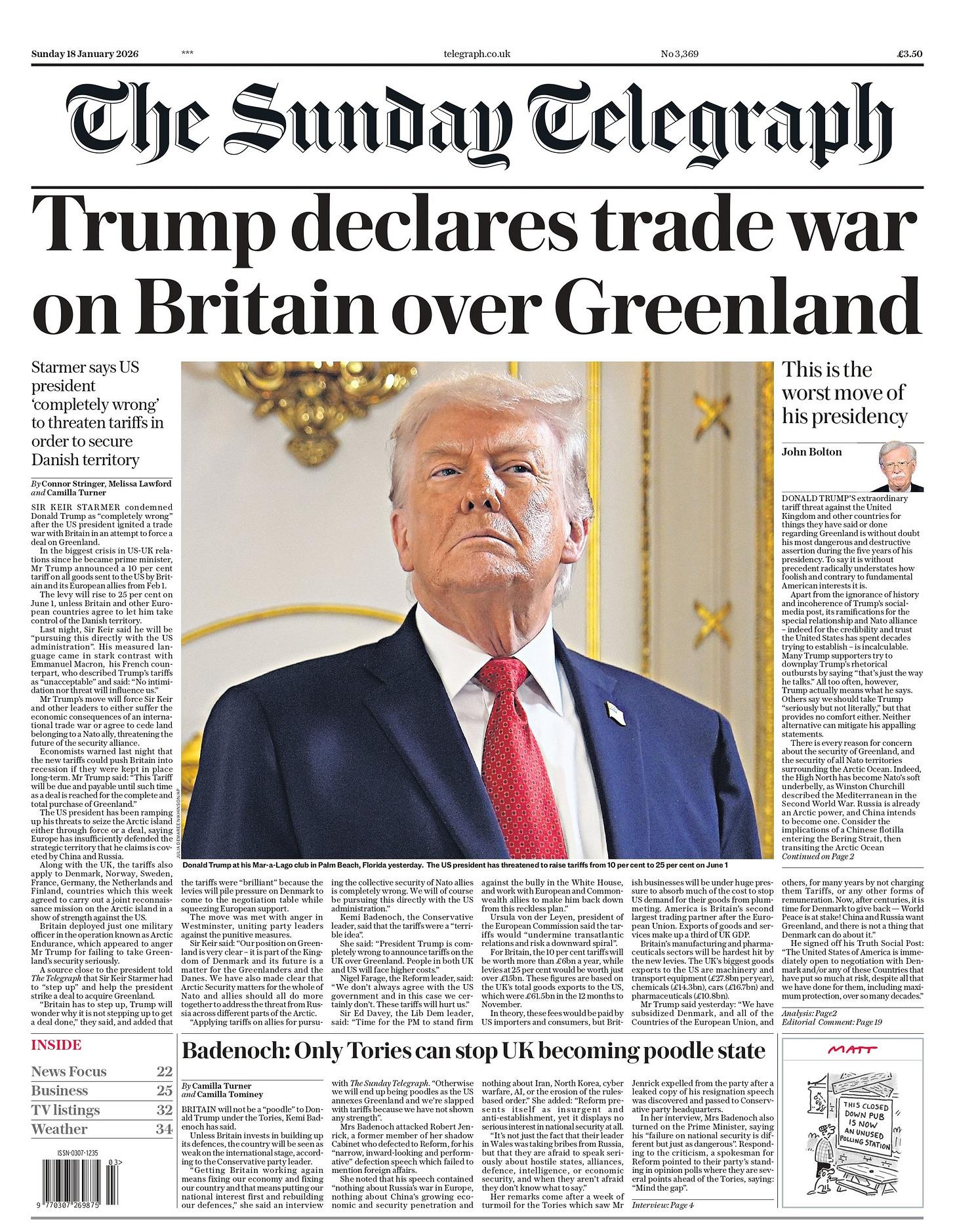 US Treasury secretary Scott Bessent has said that the Europeans project weakness while his own country projects strength. that Trump “strongly believes we cannot outsource our security”. He added: “This fight for the Arctic is real, we would keep our NATO guarantees and if there were an attack on Russia, or from some other area, we would get dragged in. Europeans project weakness, US projects strength.…I believe that the Europeans will understand that this is best for Greenland, best for Europe and best for the United States,” he said.