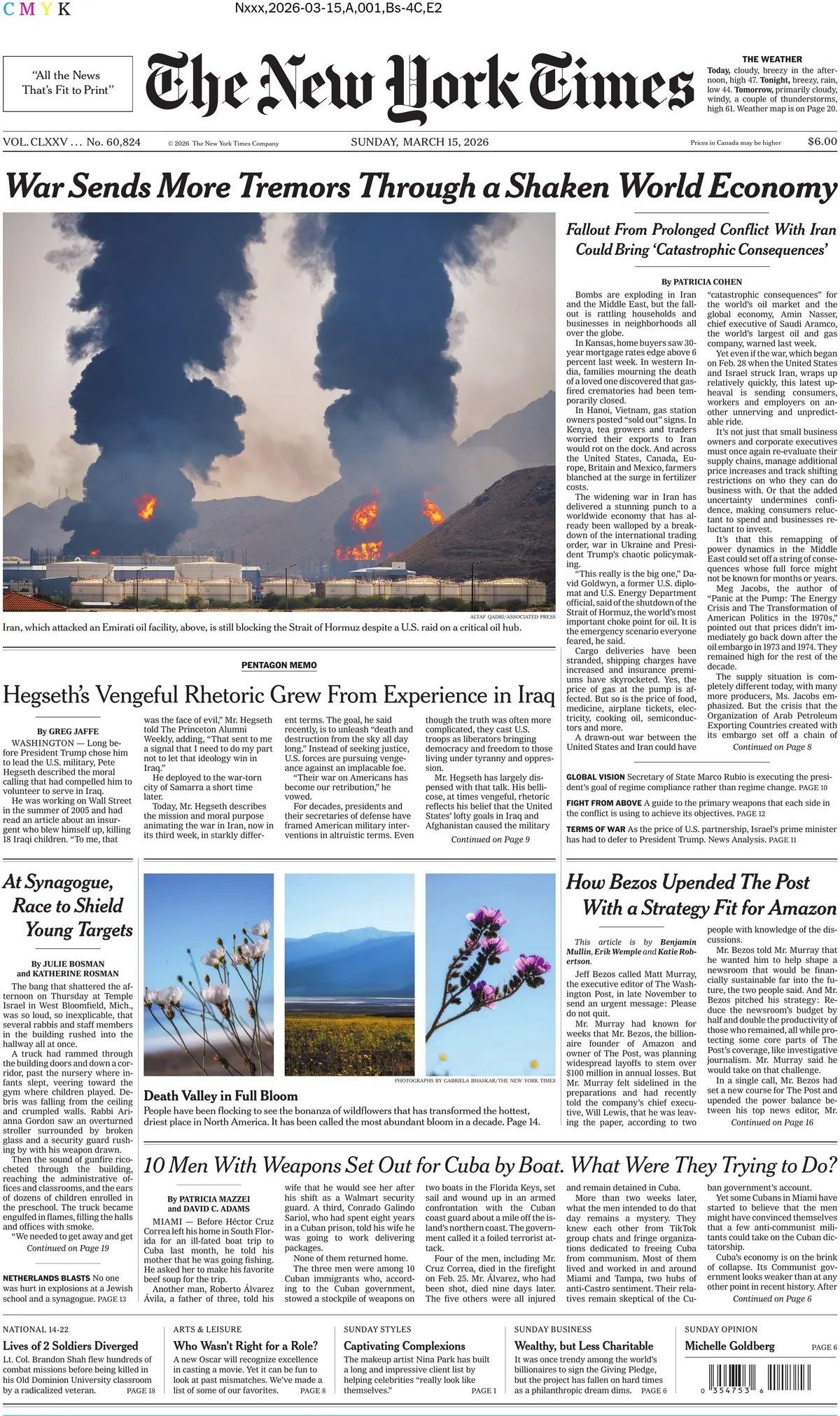 President Trump called on other countries, including Britain, France, South Korea and China, to send warships to the Strait of Hormuz to try to ensure that oil tankers could pass, as Iran pledged to keep the vital waterway closed. In a social media post on Saturday, Mr. Trump said the “Countries of the World that receive Oil through the Hormuz Strait must take care of that passage, and we will help — A LOT!” It was far from clear, however, if any countries would volunteer to patrol the Persian Gulf strait, through which about a fifth of the world’s oil transits. Oil prices have risen steeply since the United States and Israel launched their air war on Iran two weeks ago. While the Trump administration and other governments have sought to soothe prices — including by easing sanctions on some Russian oil — they have seen little success thus far. Mr. Trump has threatened to attack oil infrastructure on Kharg Island, home to Iran’s main oil export terminal, if Tehran does not allow ships to freely pass through the Strait of Hormuz. Such a move would likely further rattle energy markets. U.S. consumers have already seen the price of a gallon of gasoline rise by 25 percent on average, according to the AAA motor club. But Iran’s Islamic Revolutionary Guards Corps defied Mr. Trump’s threat, asserting in a statement on Saturday that the critical waterway was under its full control and that “any attempt to move or transit will be targeted.” Fighting continued on Sunday across the Middle East. The Israeli military said on Sunday morning that it had launched a new wave of airstrikes in western Iran. Israeli fighter jets have conducted more than 7,000 strikes in Iran since the war began in late February, according to the Israeli military. Iran’s Islamic Revolutionary Guards said on state media that they were continuing to shoot at Israel and at U.S. assets in the region. Iranian missiles repeatedly set off air raid sirens in Israel, without reports of serious casualties. Saudi Arabia said it had intercepted drones near the capital and in an eastern province - NYT