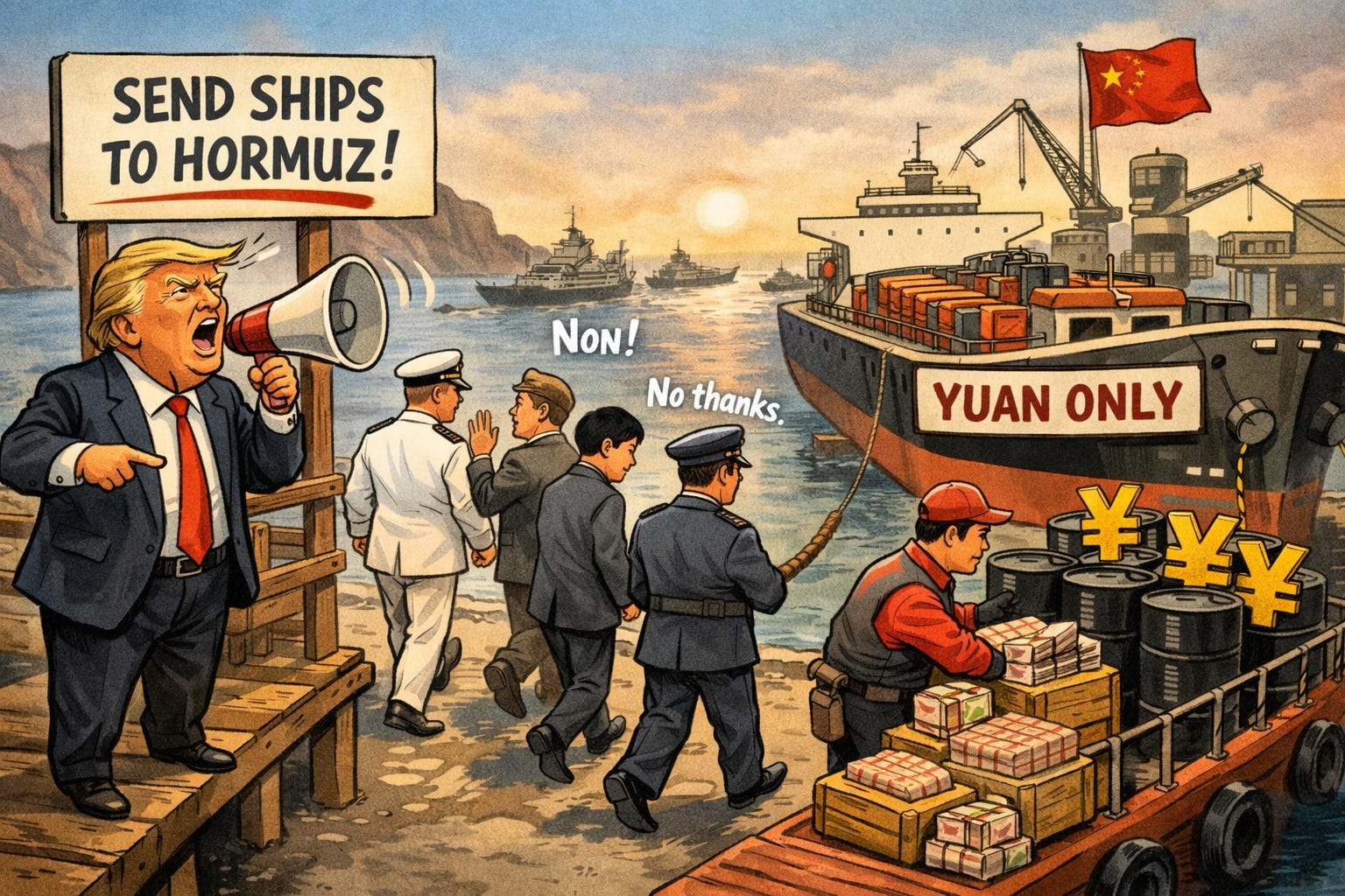 As key partners refuse Washington’s call to the Strait of Hormuz, Iran floats a yuan-only shipping proposal - raising the prospect that a military crisis could accelerate a global challenge to the USD