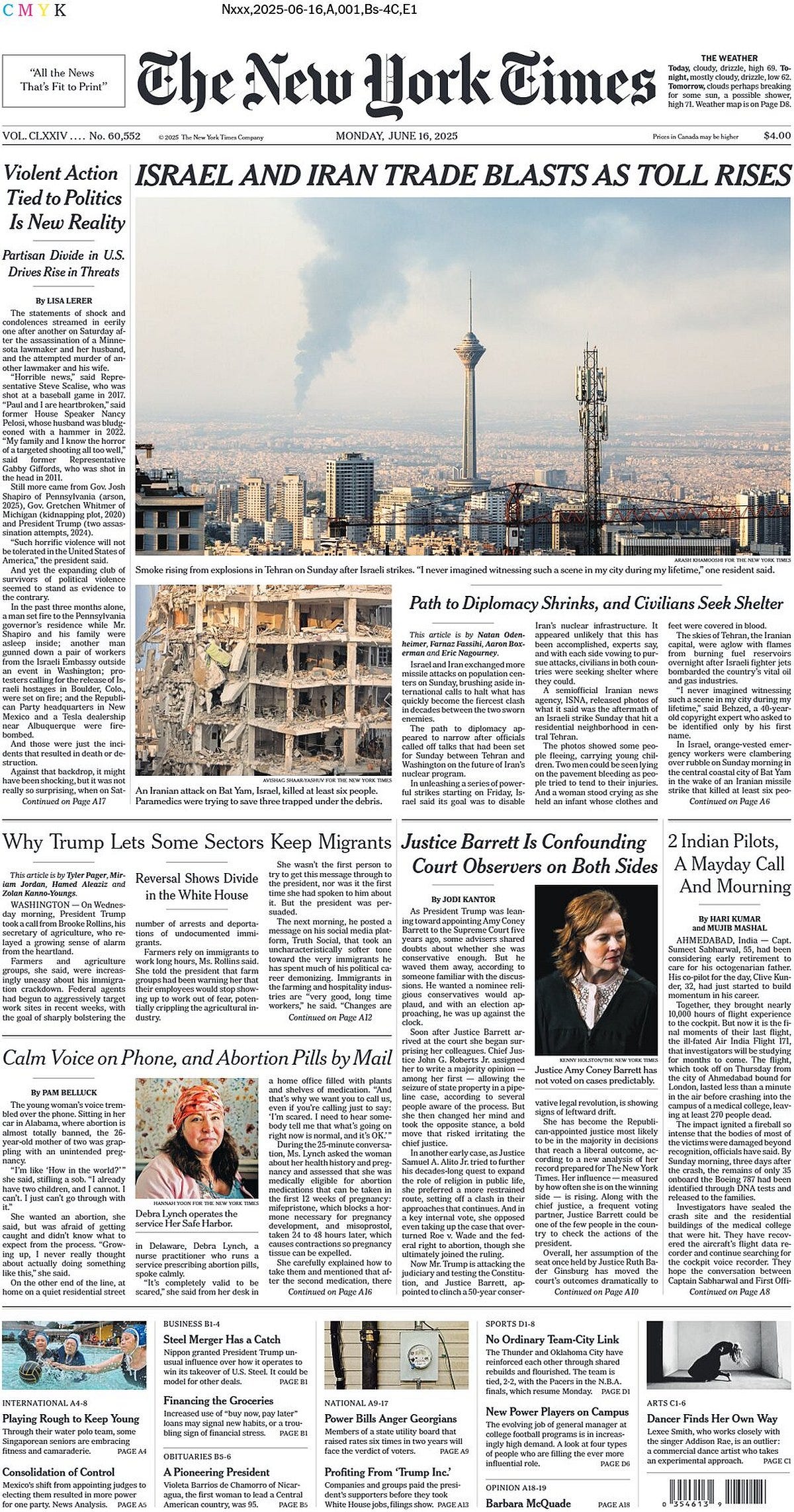Israel said on Monday that it had struck the command center of Iran’s elite Quds Force, as the fiercest and deadliest confrontation in the history of the Israeli-Iranian conflict entered its fourth day. As civilian casualties climb on both sides, the war now seems likely to last for more than a week. Israel is intensifying its efforts to destroy Iran’s nuclear and military capabilities and Iran continues to return fire with huge barrages of ballistic missiles, leaving civilians on both sides increasingly fearful and bracing for what is to come. The attack on the Quds facility in Tehran, and the extent of any casualties or damage, could not immediately be verified independently. It came as Iranian missiles struck several Israeli cities early on Monday, killing at least eight people, according to Israeli officials. The volleys were the latest since Israel began attacking Iran on Friday. Since then, Israeli strikes have killed at least 224 people in Iran, according to the country’s health ministry, and injured more than 1,400 people. In Israel, at least 24 people, identified as civilians, have been killed in retaliatory barrages by Iran, with roughly 600 injured. The attacks have been the longest and most intense in the decades-long enmity between Israel and Iran, raising fears of a wider war that could draw in the United States and other powers. Israel appears intent on fighting until Iran gives up its nuclear enrichment program, which could be used to create a nuclear bomb, but Iran has given no hint of doing so voluntarily. The Israeli military said it had struck more than 100 sites in Iran overnight, adding that it was mainly targeting missile launchers. Israeli civil authorities said that Iranian missiles hit at least three residential areas early on Monday — killing five people in central Israel, most of them in the city of Petah Tikva, and three in northern Israel - NYT