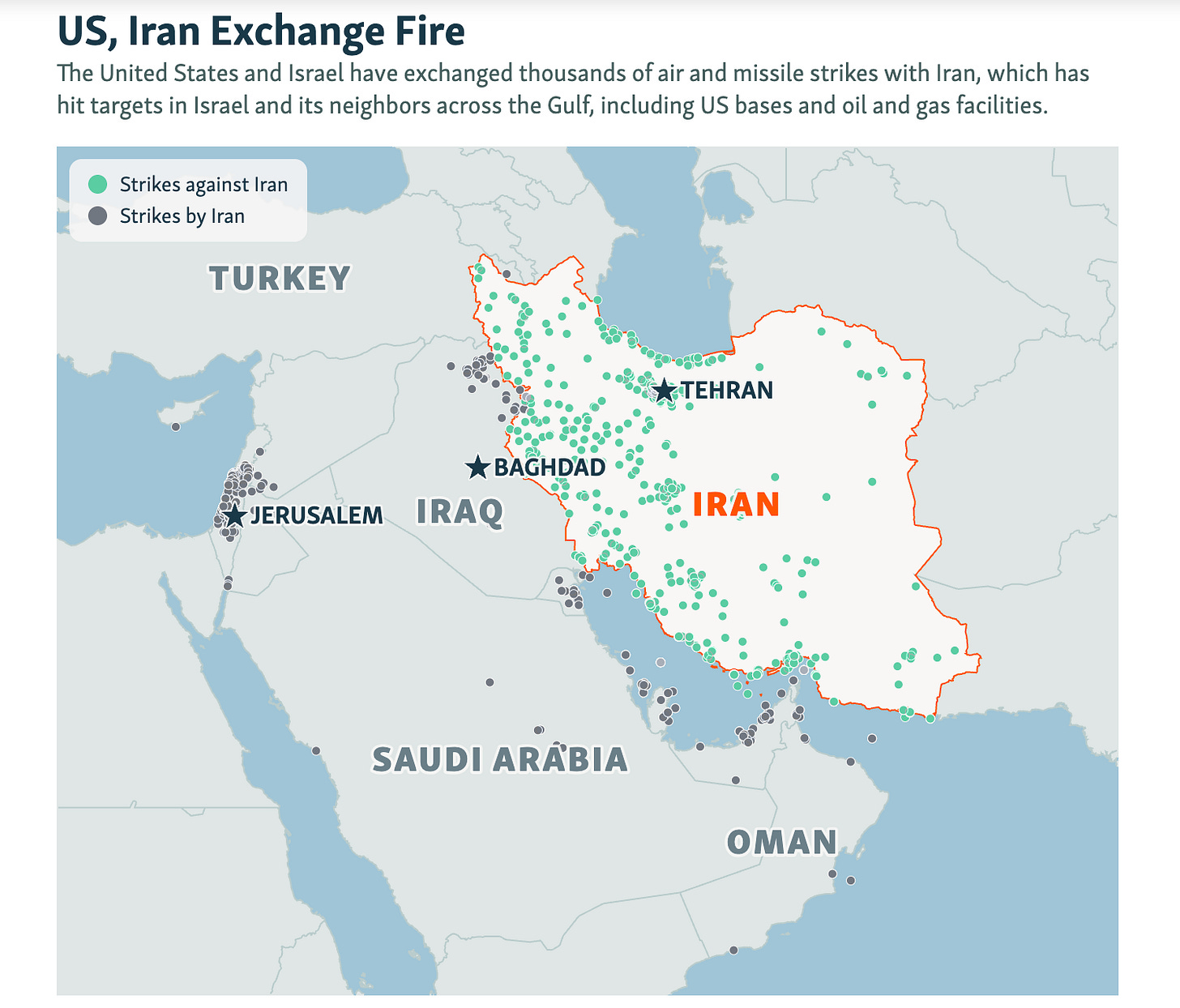 Since February 28, Tehran has launched fewer short and long-range missiles - about several dozen per day on average - yet its hit rate has increased, according to military analysts analyzing open-source data. That is partly down to the United States and Israel degrading Iran’s military capabilities, but also Tehran conserving its remaining arsenal and becoming more selective in what it targets, experts say. “US and Israeli strikes have clearly caused significant damage to Iran’s launcher infrastructure,” said Kelly Grieco, senior fellow at the Stimson Center, a Washington-based think tank. “That physical attrition likely accounts for a significant share of the launch rate decline….But Iran also seems to have also made a deliberate choice to change strategies,” she added. “Over time, Iran has shifted toward smaller, more precisely targeted salvos aimed at specific high-value targets.” Those targets include key US military installations and radar systems in the Middle East, the critical oil and gas infrastructure of America’s Arab allies in the Persian Gulf, and industrial and energy sites in Israel. By firing a relatively small number of missiles, Iran appears to be achieving its core war aims -- expanding the battlefield, disrupting the global economy, and imposing direct costs on the United States and its allies - RFE/RL