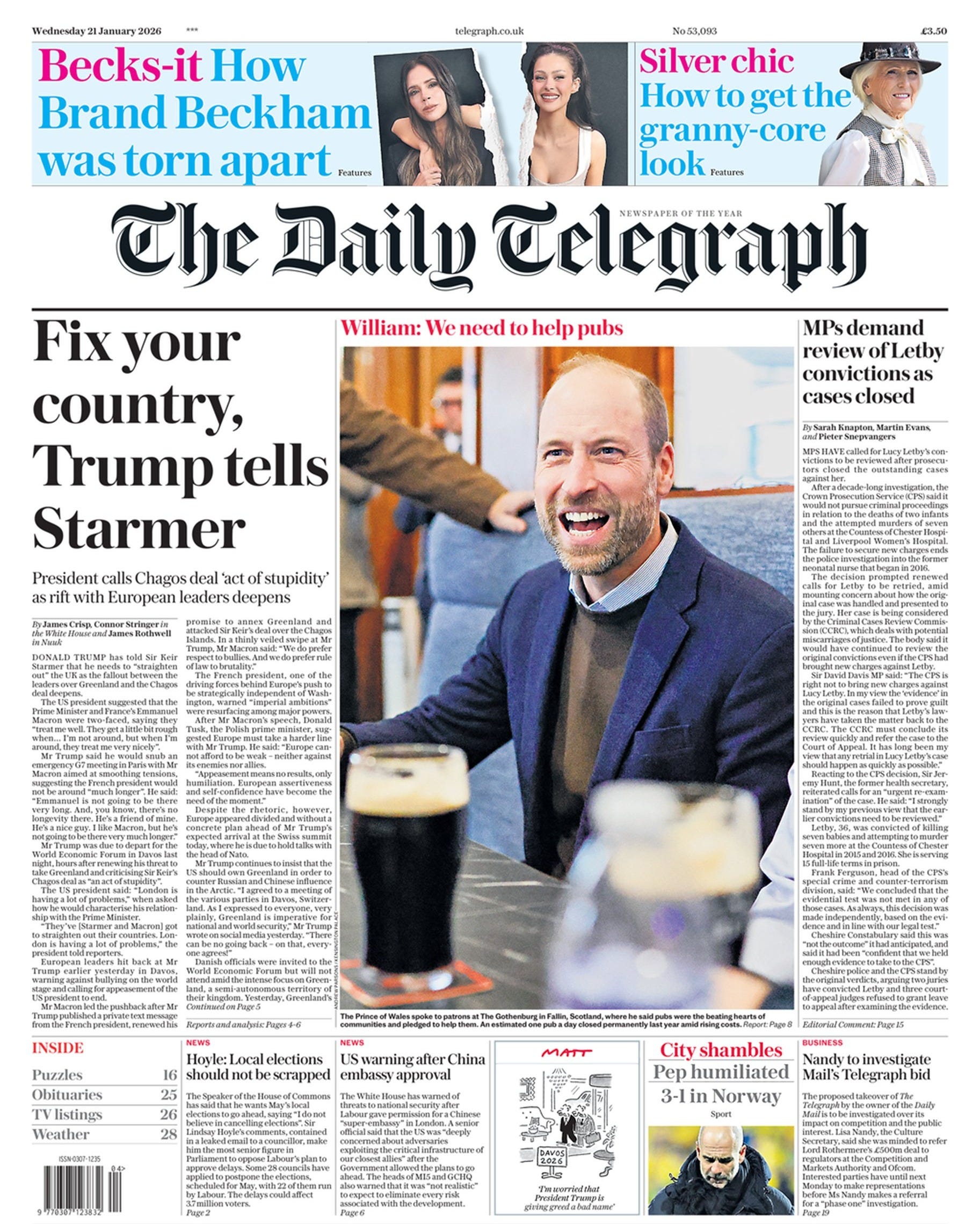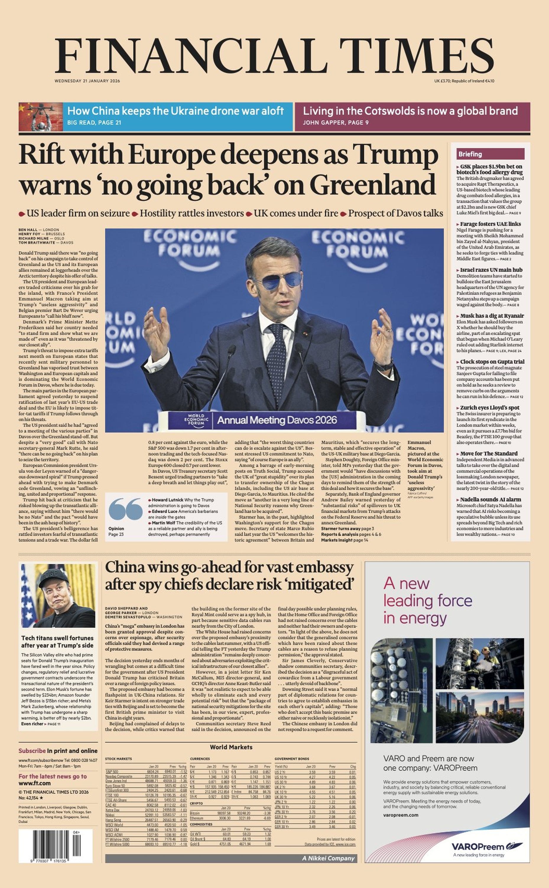 With European leaders scrambling at Davos to persuade Donald Trump to drop his ambition to own Greenland, Ukraine is increasingly being pushed into the background. That’s prompted Ukrainian leader Volodymyr Zelenskyy to consider whether it’s even worth his while to attend the World Economic Forum, according to a senior Ukrainian official and a foreign adviser familiar with the thinking in Kyiv. Europe’s leaders had planned to focus on Ukraine this week and to use a scheduled meeting with Trump to secure the U.S. president’s personal endorsement of security guarantees for a post-war Ukraine — measures Kyiv says are necessary to deter the Kremlin from restarting the conflict. But as diplomatic priorities shift, Kyiv is increasingly at risk of being forgotten, to rising frustration in Ukraine and Europe, while Trump steps up threats to seize mineral-rich Greenland — including the possibility of punitive tariffs on eight European countries that oppose his bid to annex the world’s largest island. “There’s a real war with the Russians going on in Ukraine,” said Norwegian Foreign Minister Espen Barth Eide. “Greenland is taking energy away from what we should be talking about.” - Politico