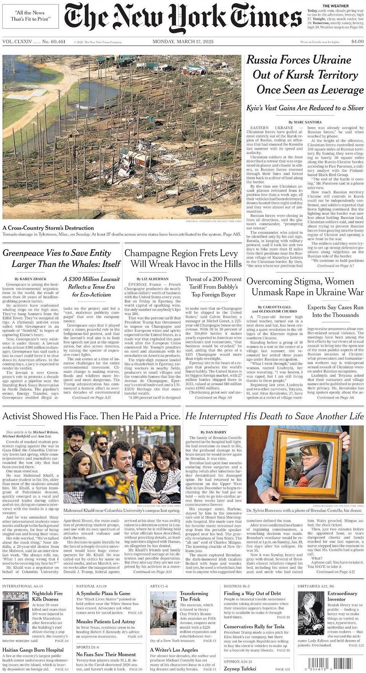 My comment: Where to begin? Over the weekend, champagne corks must have been popping in the Kremlin as the Trump administration announced major policy moves that would be greeted with glee by Russian President Vladimir Putin - as well as by other autocrats. Aside from the gutting of the state-funded international broadcaster, Voice of America, and possibly Radio Free Europe/Radio Liberty (RFE/RL), Trump’s Middle East envoy, Steve Witkoff, told CBS that the Russian-occupied Zaporizhzhia Nuclear Power Plant, Europe’s largest, will be on the negotiating table - along with ports and “the Black Sea potential agreement.’ That came as a surprise to most Ukrainians. Also breaking news, via The New York Times, that the U.S. is withdrawing from a multinational group created to investigate leaders responsible for the invasion of Ukraine, including President Vladimir Putin of Russia. Oh - and finally, a unit that helps rescue Ukrainian children kidnapped by Russia during its full-scale invasion has been defunded as part of the budget slashing led by Elon Musk. Paused is financial support for researchers at Yale University's Humanitarian Research Lab (HRL). Read more below.