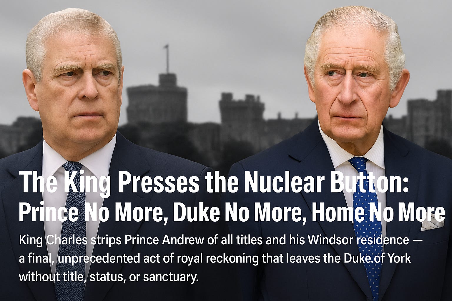 King Charles strips Prince Andrew of all titles and his Windsor residence — a final, unprecedented act of royal reckoning that leaves the Duke of York without title, status, or the huge sanctuary