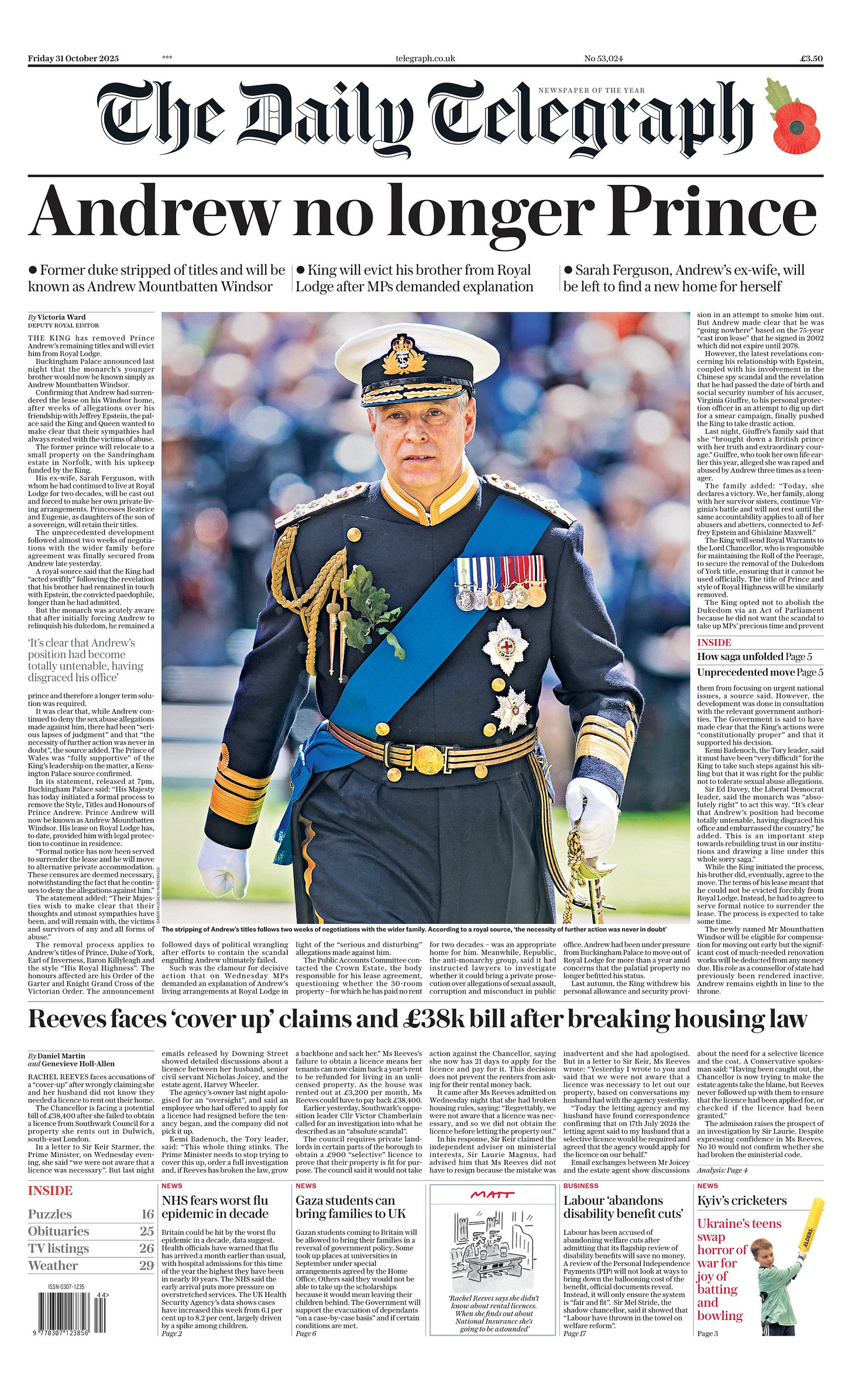 The Democratic congressman Suhas Subramanyam, who has previously called for Andrew to testify before a US Congressional committee about his links to Epstein and Maxwell, urged Andrew to give evidence. He said: “It’s clear that Prince Andrew has information about Epstein’s crimes and he must do more than just give up titles or hide from the public spotlight. He owes it to the victims to share everything he knows about Epstein’s criminal operation and come before the oversight committee. “Regardless, we will continue to pursue the files and all the evidence, no matter how rich and powerful the perpetrators involved.” - The Guardian