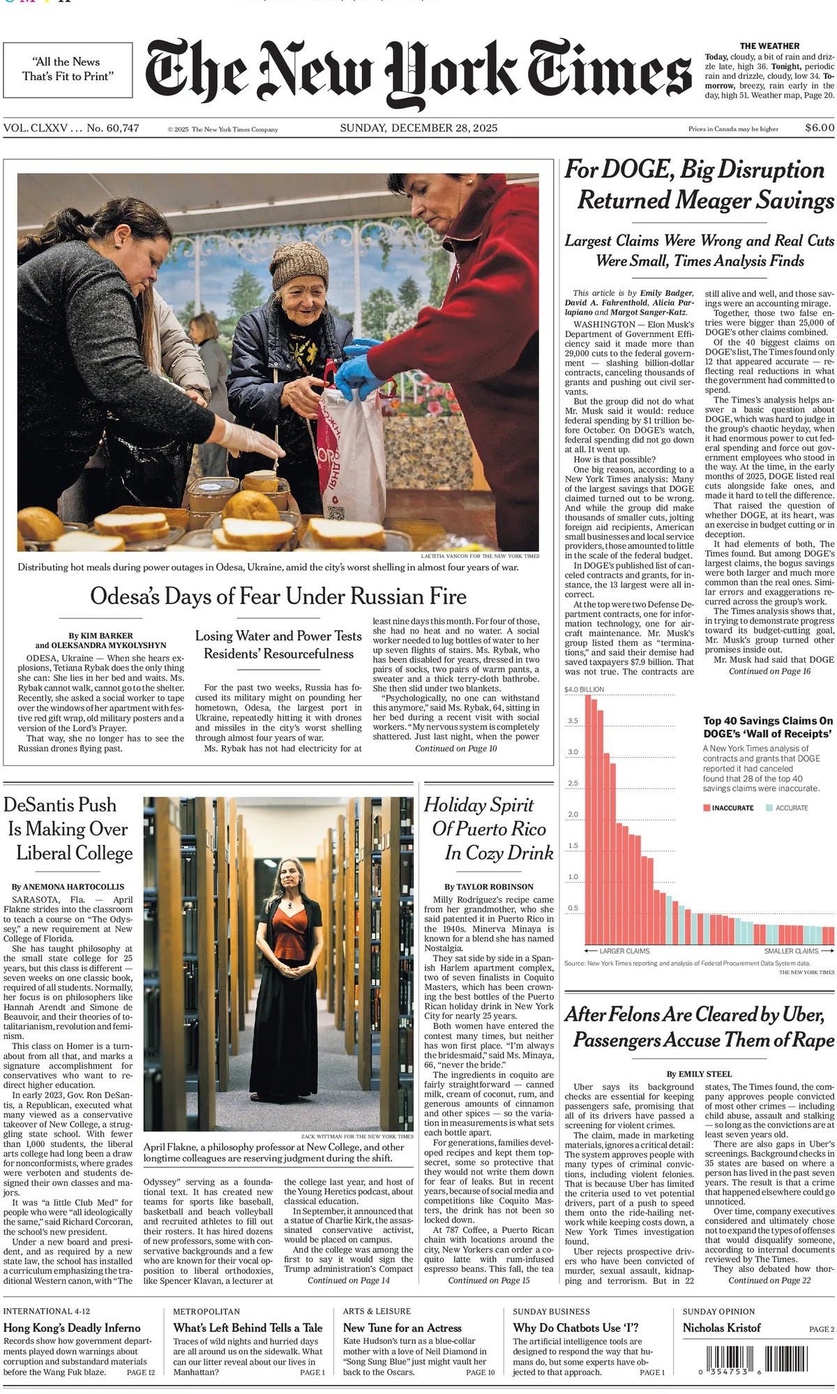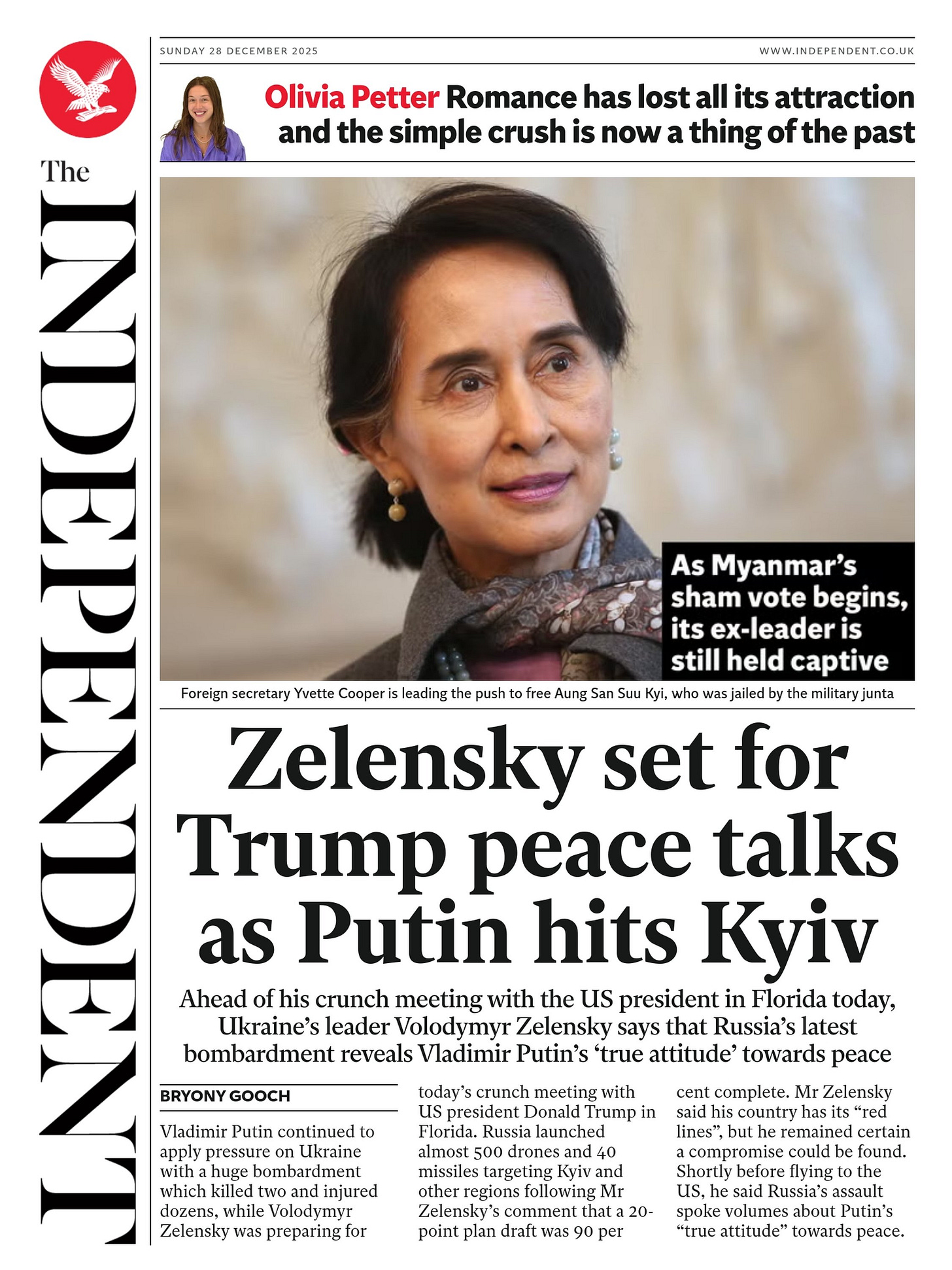 US President Donald Trump and Ukrainian President Volodymyr Zelenskyy projected both optimism and uncertainty over the progress of a Russia-Ukraine peace deal after their meeting in Florida on Sunday. “I do think we’re getting a lot closer, maybe very close,” Trump said, while Zelenskyy said the plan was “90%” complete. But neither leader offered evidence of a major breakthrough in the 20-point proposal that US and Ukrainian negotiators spent weeks revising, especially over two major sticking points: the future of the Donbas region in eastern Ukraine and that of a Russian-controlled nuclear power plant. Before the meeting, Zelenskyy said “a lot can be decided before the New Year,” but pointed to Russia’s relentless weekend strikes as proof that Moscow “doesn’t want peace.” - Semafor