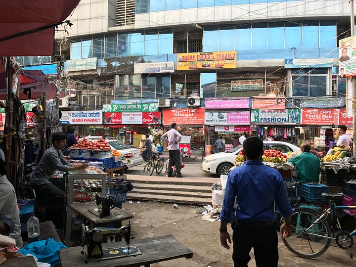 L-R: A street scene in Dhaka, one of the coastal megacities facing the prospect of a ‘watery grave.’ A young boy at a marketplace in Chittagong, Bangladesh. Credit: M. Bociurkiw
