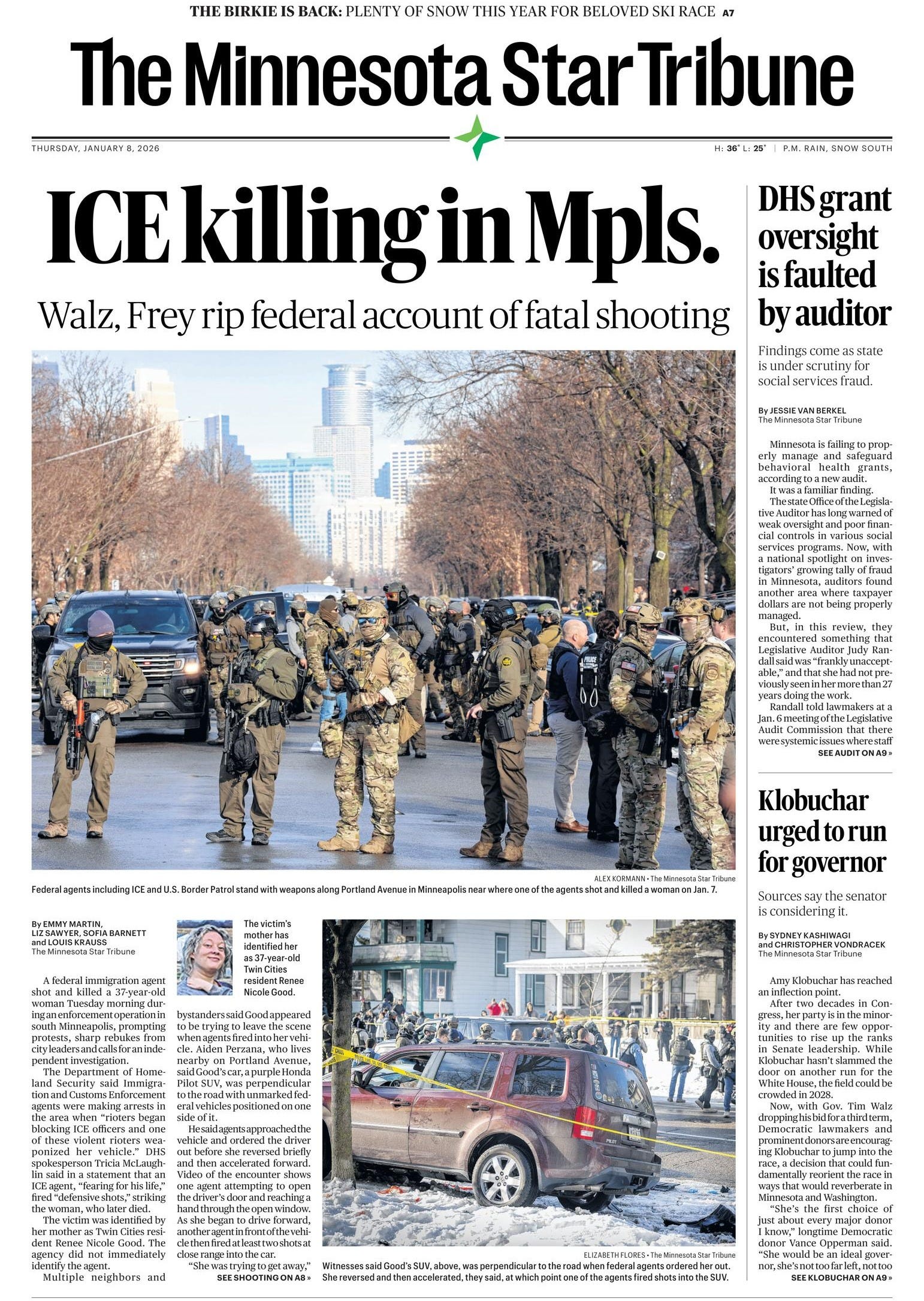U.S. Sen. Amy Klobuchar, who is said to be considering a run for governor, called the shooting “the result of the administration sending federal agents onto our streets against the wishes of local law enforcement.” She said she was concerned "statements made by DHS do not appear to reflect video evidence and on-the-ground accounts."