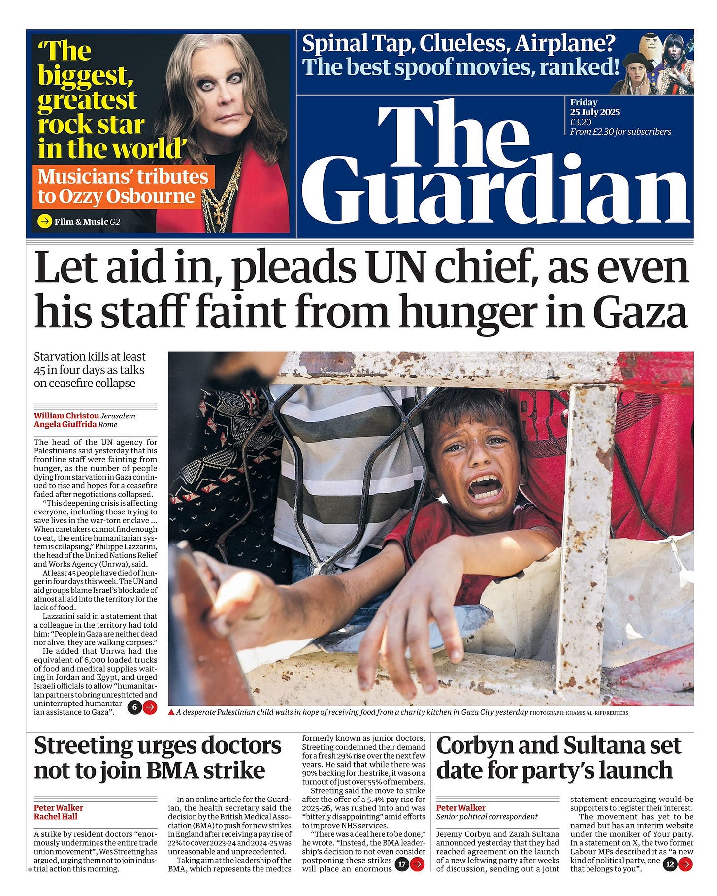 Israel says it will allow foreign countries to airdrop aid into Gaza in the coming days, according to army radio and media reports Countries including the UK, US and Jordan dropped supplies into Gaza from military planes last year, but humanitarian organisations warned it wasn't enough to meet soaring needs Gaza's Hamas-run health ministry says nine people have died of malnutrition in the past 24 hours, bringing the total such deaths to 122. Humanitarian organisation Médecins Sans Frontières (MSF) says its teams are "witnessing catastrophic levels of malnutrition" among patients and staff in Gaza. Meanwhile UK PM Keir Starmer will speak to the German and French leaders today after Emmanuel Macron pledged to recognise the state of Palestine. Separately, a senior Hamas official denies to the BBC that Gaza ceasefire talks have collapsed, after the US and Israel withdrew their negotiating teams from Qatar - Washington had accused Hamas of not "acting in good faith"