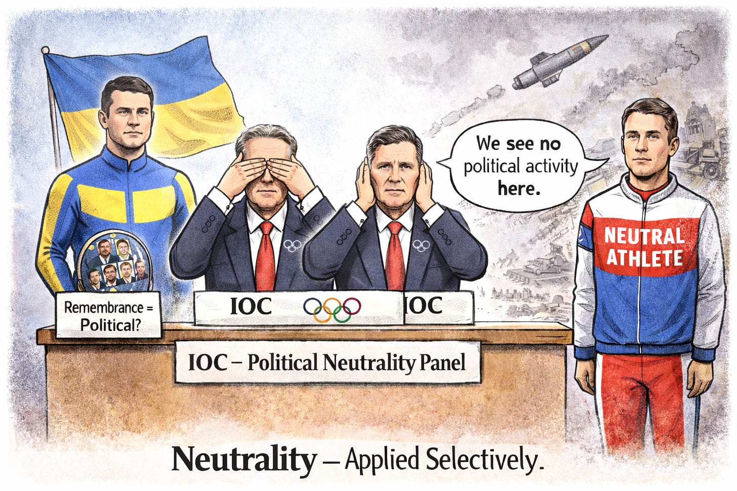 The Olympic movement says sport must be apolitical. But banning a Ukrainian athlete for honoring war dead - while approving “neutral” Russians with troubling links - exposes a troubling fault line