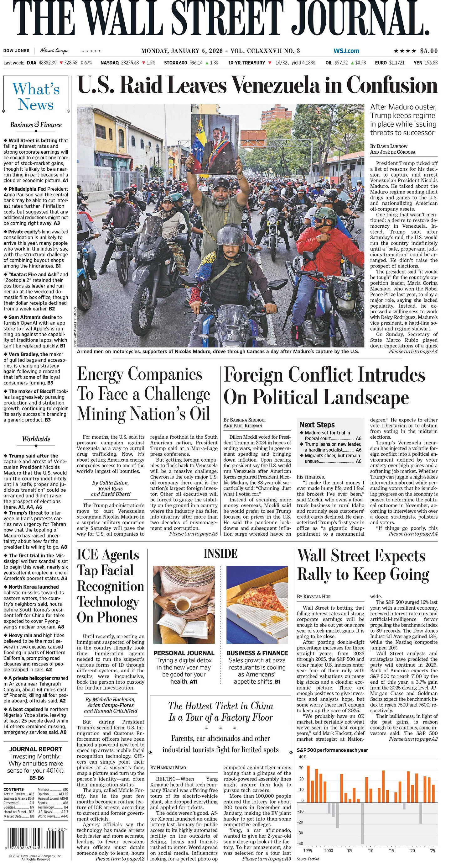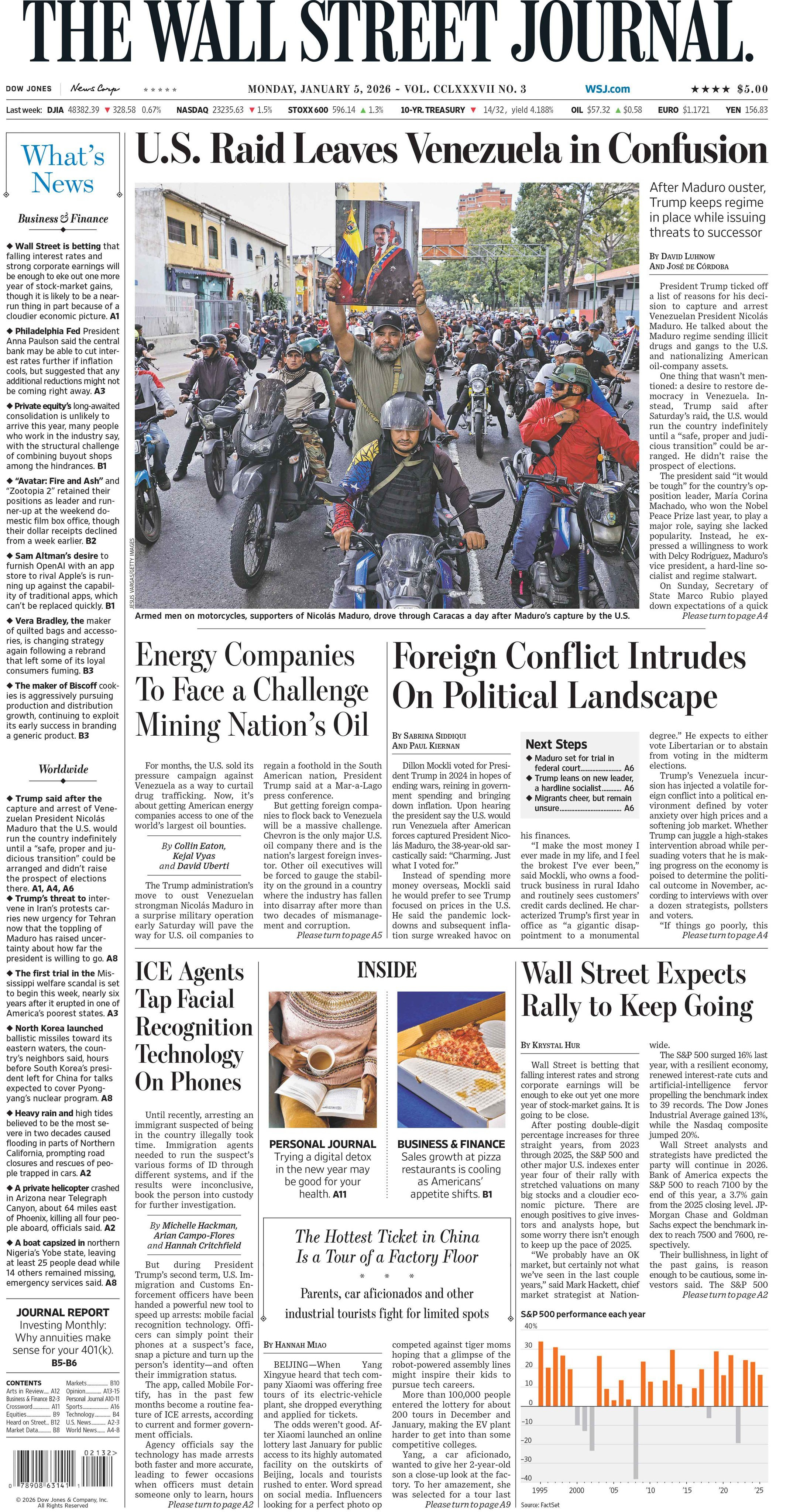 At least 16 oil tankers hit by U.S. sanctions appear to have made an attempt to evade a major American naval blockade on Venezuela’s energy exports over the last two days, in part by disguising their true locations or turning off their transmission signals. For weeks, the ships had been spotted on satellite imagery docked in Venezuelan ports, according to an analysis by The New York Times. But by Saturday, in the wake of Maduro’s capture by U.S. forces, all were gone from those locations. Four have been tracked by satellite sailing east 30 miles from shore, using fake ship names and misrepresenting their positions, a deceptive tactic known as “spoofing.” These four have left port without the interim government’s authorization, according to internal communications from Venezuela’s state-owned oil company and two people in the Venezuelan oil industry, who spoke on condition of anonymity out of fear of retribution. The departures could be seen as an early act of defiance of interim President Delcy Rodríguez’s control. The other 12 are not broadcasting any signals and have not been located in new imagery. President Trump unilaterally imposed a “complete blockade” on sanctioned Venezuelan oil tankers on Dec. 16, an effort that Secretary of State Marco Rubio said on Sunday was one of the largest “quarantines” in modern history, and was successfully “paralyzing” the regime’s ability to generate revenue. The blockade has notably exempted oil shipped by American company Chevron to the U.S. Gulf Coast - NYT