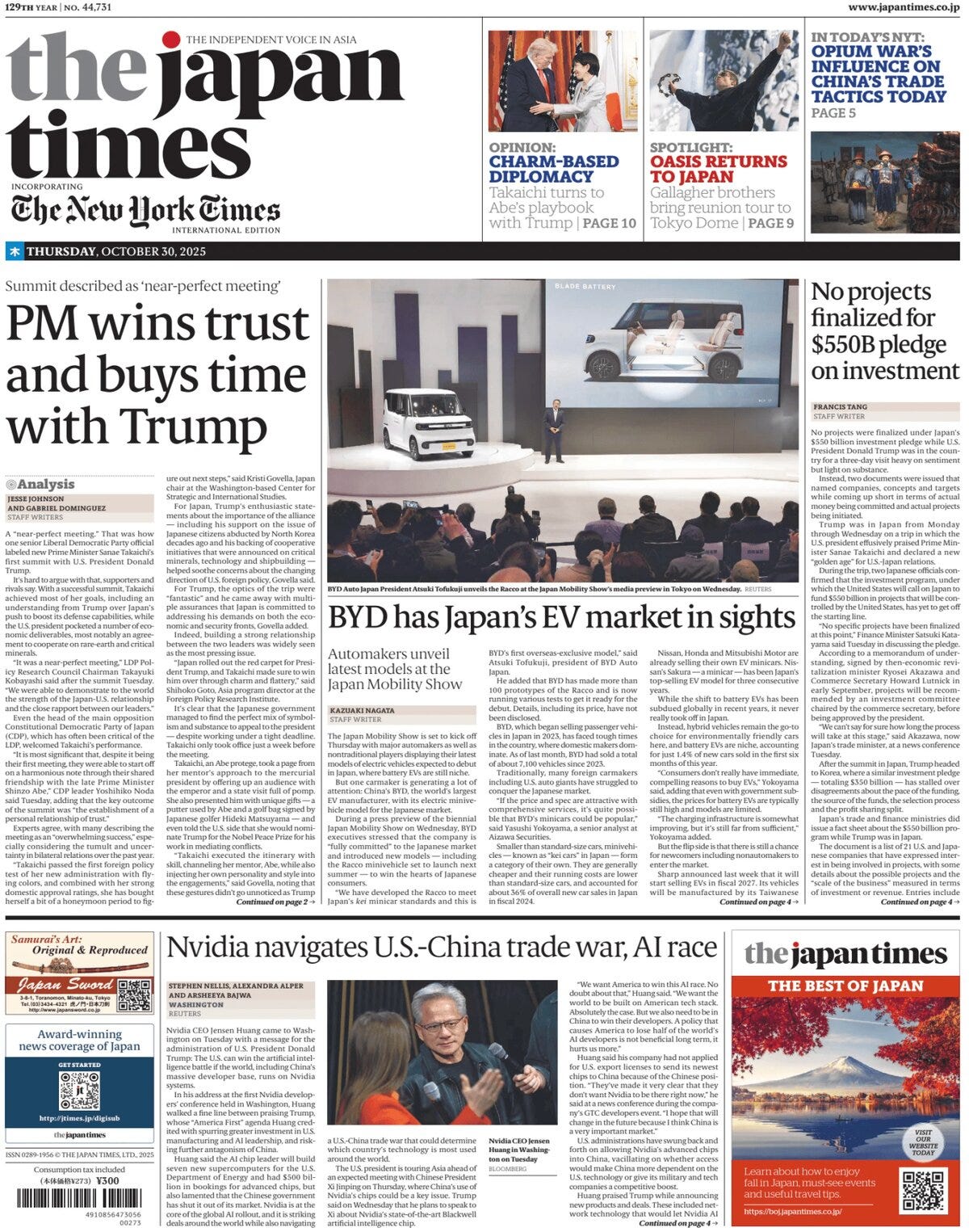 President Trump said on Thursday that China had agreed to postpone for a year strict new controls on its supply of critical rare earth metals, potentially relieving a major pressure point that has caused alarm in global supply chains. Separately, Mr. Trump said he would cut in half the 20 percent tariffs he had imposed on Chinese goods to pressure China to do more to control fentanyl trafficking. The reduction announced on Thursday brings overall tariffs on Chinese goods to around 47 percent from 57 percent, he said. Mr. Trump made the announcement as he flew back to Washington after a summit meeting with China’s top leader, Xi Jinping, that had been expected to focus on trade issues but was overshadowed by Mr. Trump’s announcement that the United States would resume nuclear weapons testing after more than three decades. While Mr. Trump greeted Mr. Xi warmly ahead of their roughly 90-minute meeting at a military base in South Korea, the mood was tenser than it had been when he met the leaders of Japan, South Korea and Malaysia earlier on his trip. Neither man mentioned nuclear weapons or testing. The Chinese government’s readout of their meeting did not mention any new trade agreements. The readout said that Mr. Xi had told Mr. Trump that both leaders should avoid the “vicious cycle of mutual retaliation.” It also said Mr. Trump would travel to China next year and that he had invited Mr. Xi to the United States. China’s Commerce Ministry later said that the two sides had agreed on a one-year extension to a truce they had put in place earlier this year after a flurry of tit-for-tat escalations drove up tariffs on each other’s imports to more than 100 percent - NYT