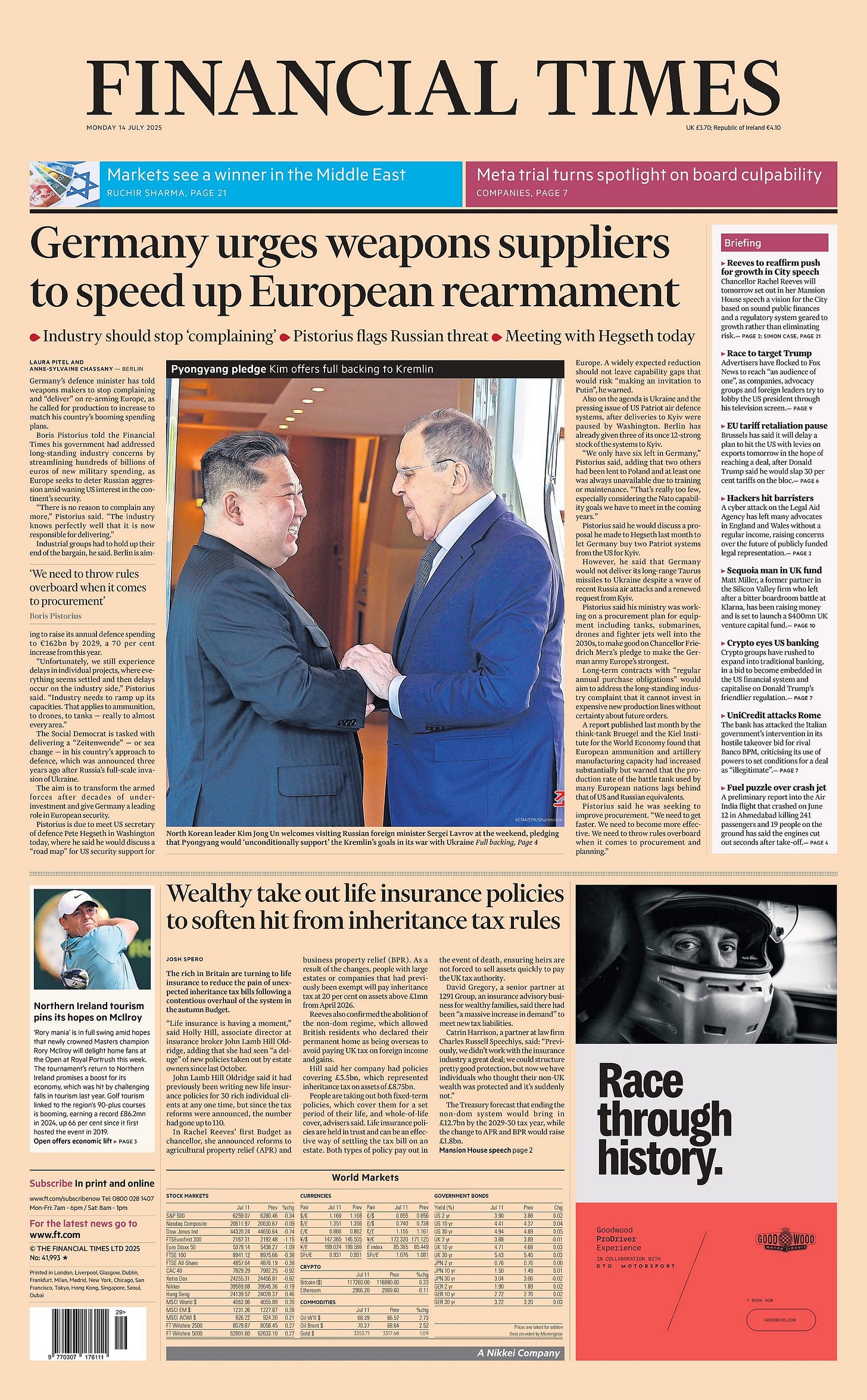 Donald Trump declared he is "very, very unhappy" with Russia and pledged to deliver “top-of-the-line” weapons to Ukraine through NATO. He also announced a potential 100% secondary tariff regime on countries that help Moscow circumvent sanctions — but only if a ceasefire deal is not reached within 50 days. The announcement came during a White House meeting with NATO Secretary General Mark Rutte, according to the BBC.