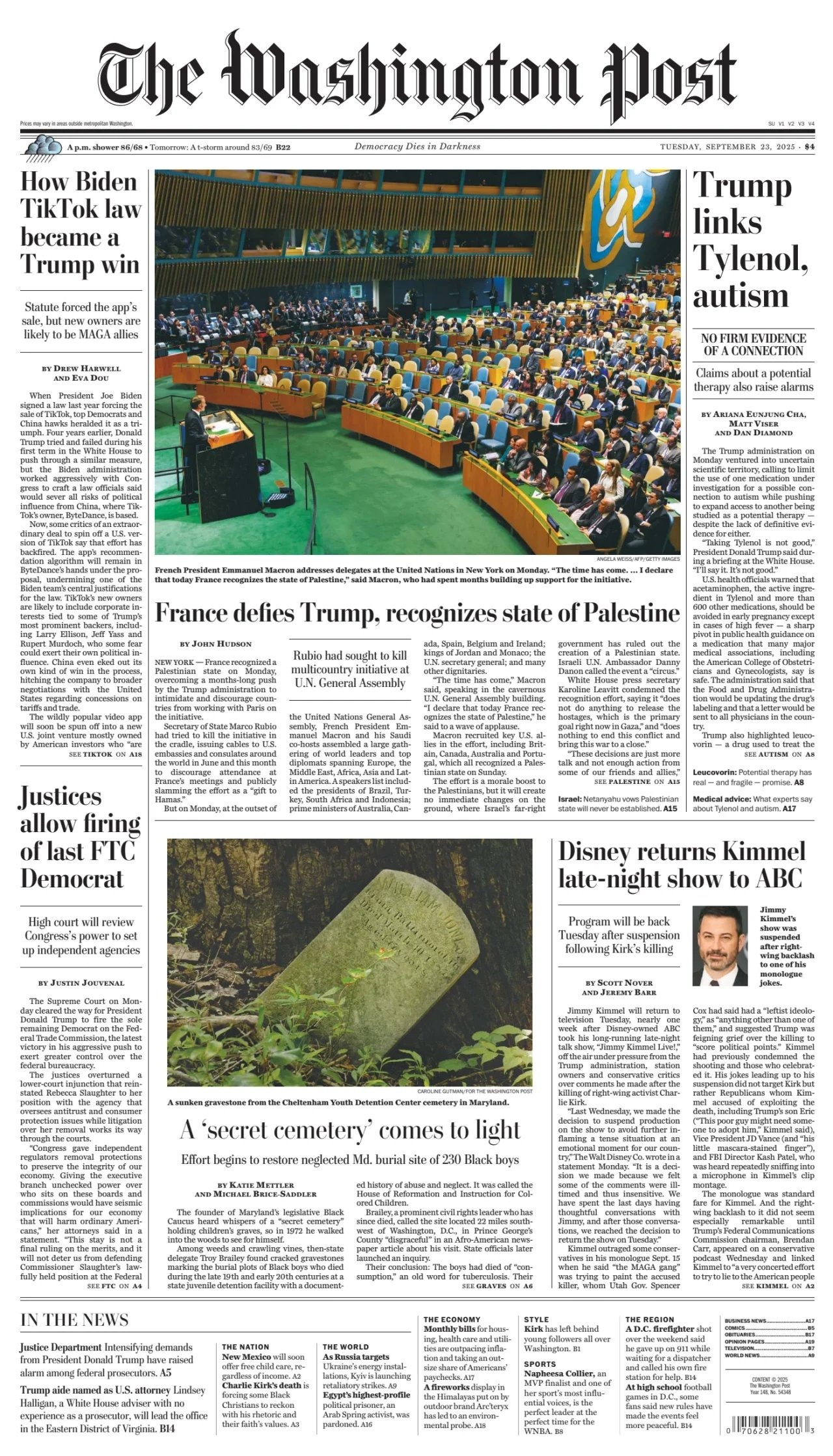 Deadly Israeli air attacks have intensified in Gaza City and ground forces have advanced in the south of the city, killing at least 36 Palestinians across the enclave, Al Jazeera reported. Gaza’s Health Ministry has warned that patients are facing “certain death” as hospitals in the besieged territory may have to shutter vital departments within “a few days” due to fuel shortages. In his UNGA address, Donald Trump did not devote a single sentence to the situation in Gaza - or the growing number of major UN states recognizing Palestinian statehood (leaders of six countries, including France, have moved to recognise Palestinian statehood).