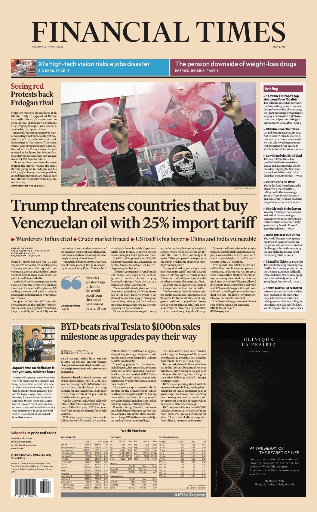 The UK Foreign, Commonwealth and Development Office on Monday advised Britons against "all travel to parts of Turkey" due to the growing unrest in Istanbul and other Turkish cities over the arrest of Istanbul mayor Ekrem Imamoglu last week. The foreign office warned that the demonstrations "may become violent" and that the local police have responded by using tear gas and water cannons."Large demonstrations continue to occur outside diplomatic missions connected to the conflict in major cities, particularly Israeli diplomatic missions in Ankara and Istanbul," the foreign office said, urging Britons to avoid all demonstrations and leave the area if one develops - The Independent