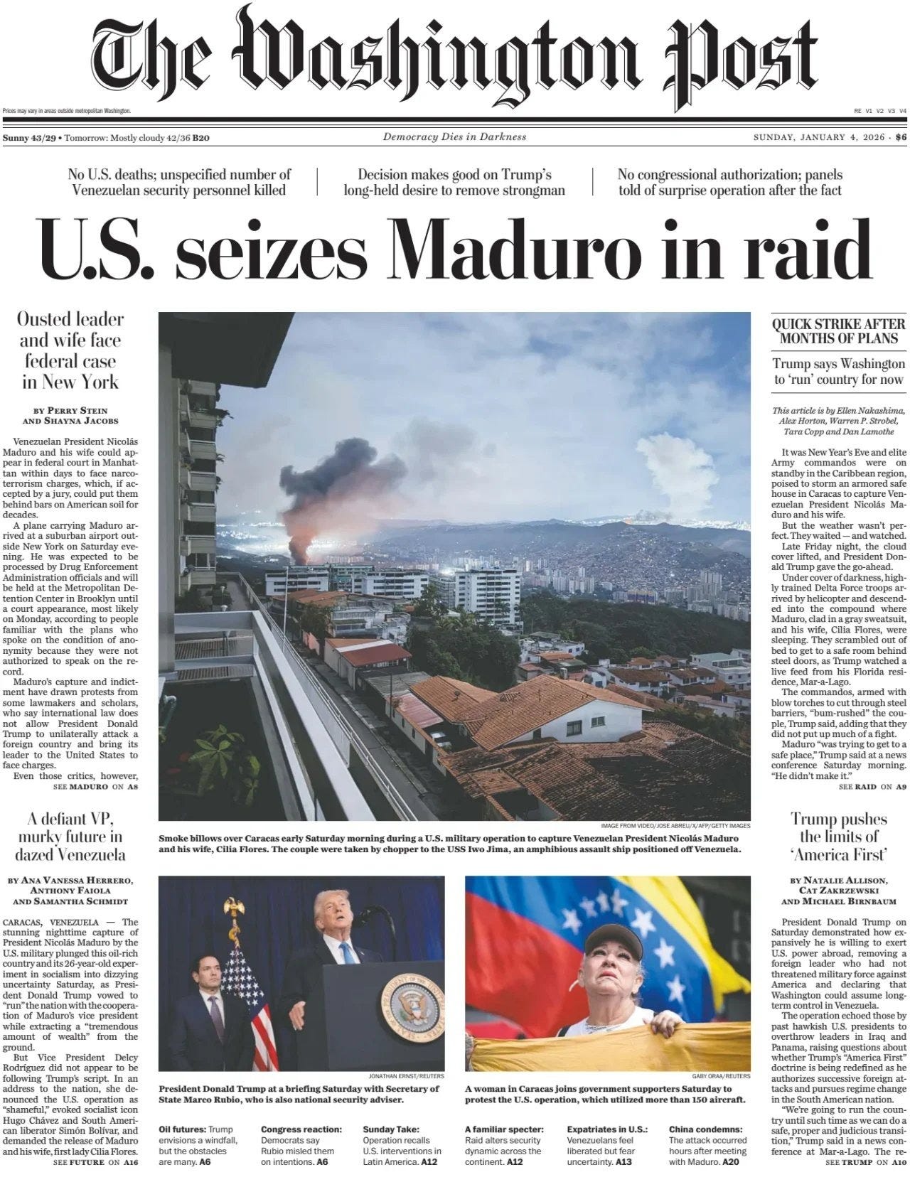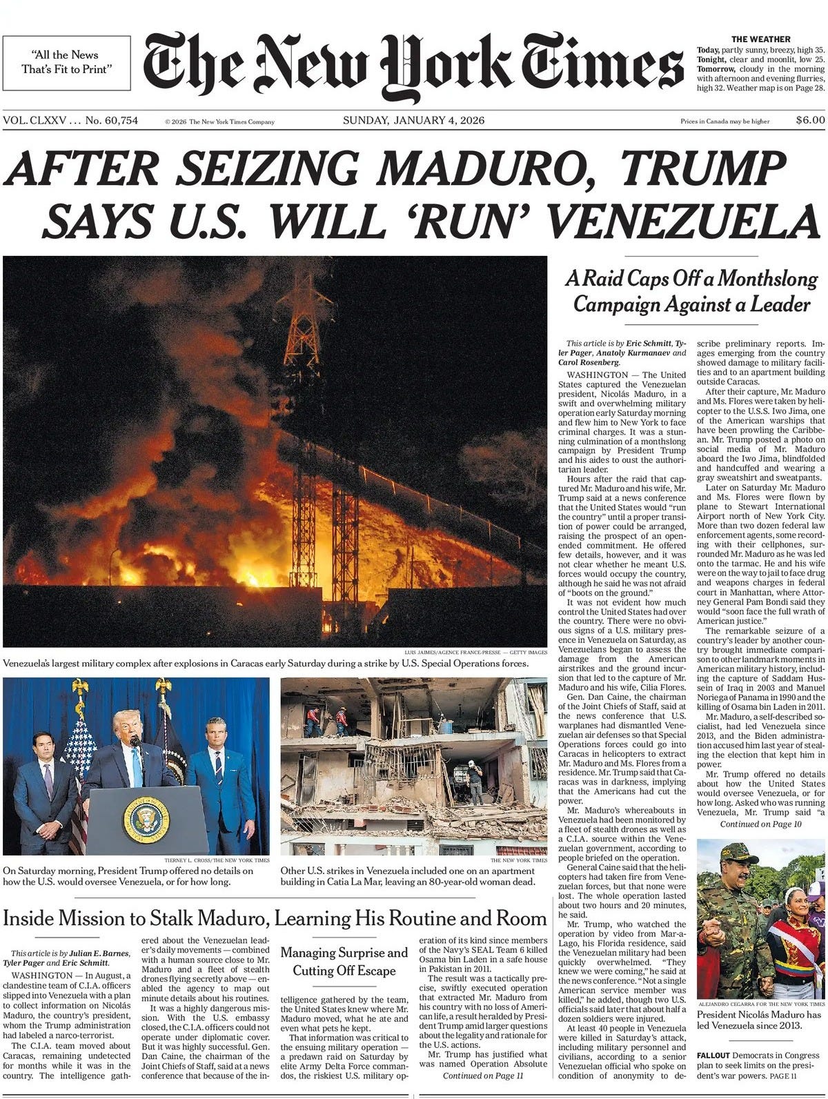 As President Donald Trump announced Saturday that the U.S. would “run” Venezuela for now, he and top aides made clear that the U.S. may not stop there — and demanded that the rest of the world take note. Secretary of Defense Pete Hegseth said Venezuela’s long-time dictator, Nicolas Maduro, captured in an overnight raid and extradited to New York on Saturday to be indicted on narco-conspiracy charges, “had a chance” to leave on his own before becoming the latest example of a leader paying a high price for not responding to Trump’s pressure. “He effed around and he found out,” Hegseth said of Maduro. The menacing comments were interwoven with specific threats toward three other countries that could soon be in the administration’s sights: Colombia, Cuba and Mexico. The rest of the hemisphere is paying attention, and attempting to push back on Trump through condemnations of the strike itself and warnings of what could come next. “All nations of the region must remain alert, as the threat hangs over all,” the Cuban government said in a statement. The administration’s warnings, meanwhile, are getting bolder and more definitive. Trump again accused Colombia’s president of “making cocaine” and reaffirmed his past threats that he “does need to watch his ass.” He predicted “we will be talking about Cuba.” Secretary of State Marco Rubio offered a more sinister threat of future American action. “Look, if I lived in Havana and I worked in the government, I’d be concerned,” Rubio said. Earlier during a phone interview with Fox News, Trump warned that “something will have to be done about Mexico,” stating that he’s asked President Claudia Sheinbaum if she wants the U.S. military’s “help” in rooting out drug cartels. “American dominance in the Western hemisphere will never be questioned again,” Trump said. Trump outlined a more aggressively expansionist foreign policy in his inaugural address nearly one year ago, shocking long-time allies with threats of making Canada “the 51st state” and colonizing Greenland, an autonomous region belonging to Denmark - Politico