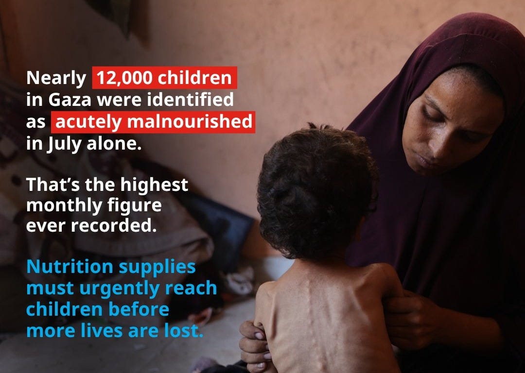 Gaza has seen its highest monthly figure of acute malnutrition in children, with hunger-related deaths rising in the enclave, the Director General of the World Health Organization reported on Thursday. "In July, nearly 12,000 children under five years were identified as having acute malnutrition in Gaza, the highest monthly figure ever recorded, says director general of world health organization," said Tedros Adhanom Ghebreyesus. There is an upward trend in the number of trucks entering Gaza but it is still below what was agreed between the European Union and Israel under a deal last month on improving humanitarian access, the bloc’s foreign policy and humanitarian arms said in a document seen by Reuters on Thursday. The UN and other partners report that 463 trucks were offloaded at crossing points to Gaza between July 29 and August 4, the document said.