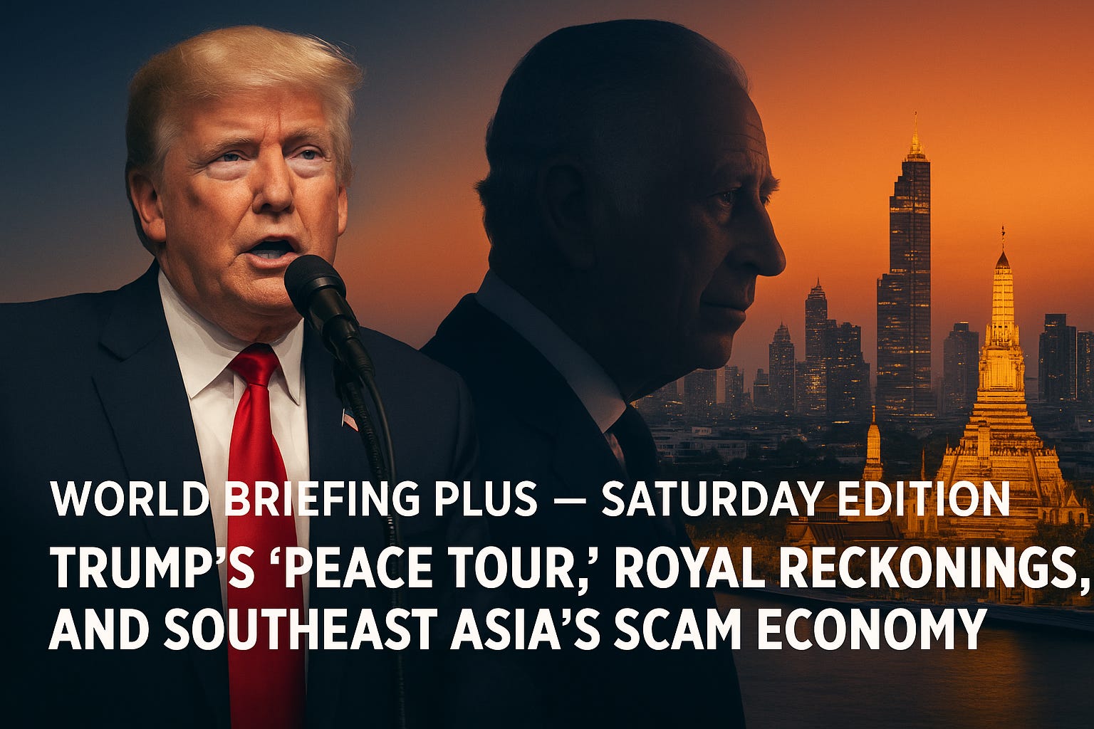 World Briefing Plus: Trump’s 'Peace Tour,' Royal Reckonings, and Southeast Asia’s Scam Economy